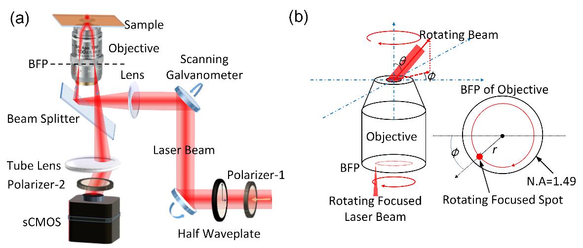 針對上述不足,中國科學(xué)技術(shù)大學(xué)光學(xué)與光學(xué)工程系微納光學(xué)與技術(shù)課題組副教授張斗國、教授王沛,與浙江大學(xué)教授劉旭、匡翠方,中國科學(xué)院合肥物質(zhì)科學(xué)研究院安徽光學(xué)精密機(jī)械研究所研究員劉建國、桂華僑,中國科大高分子科學(xué)與工程系教授鄒綱,美國馬里蘭大學(xué)醫(yī)學(xué)院教授J.R. Lakowicz等合作,提出并實(shí)現(xiàn)了一種基于旋轉(zhuǎn)照明的表面波光學(xué)顯微成像新技術(shù),提高了無標(biāo)記成像的分辨率,拓展了表面波光學(xué)顯微鏡的應(yīng)用范疇,相關(guān)研究成果以Label-free surface-sensitive photonic microscopy with high spatial resolution using azimuthal rotation illumination 為題,發(fā)表在國際期刊《科學(xué)進(jìn)展》(Science Advances)上。