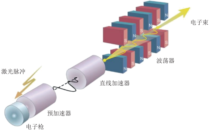 同步輻射光源正在經(jīng)歷從第三代到第四代的跨越。第四代同步輻射光源是基于衍射極限儲存環(huán)技術(shù),亮度將比第三代光源提高幾百倍以上,相干性更好,對世界科技變革的影響難以估量,已成為當(dāng)前國際競爭的熱點。高亮度光源發(fā)展的另一條技術(shù)路徑—自由電子激光的發(fā)展,使得人類能夠在原子分子水平上動態(tài)認識世界。自由電子激光的原理是通過自由電子和光輻射的相互作用,電子將能量轉(zhuǎn)送給輻射而使輻射強度增大。自由電子激光的發(fā)展將為多學(xué)科提供高分辨成像、超快過程探索、先進結(jié)構(gòu)解析等尖端研究手段,必將有效推動諸多學(xué)科領(lǐng)域的基礎(chǔ)和應(yīng)用研究的發(fā)展(圖5)。