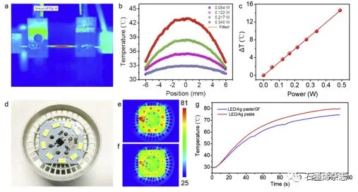 隨著微電子集成與組裝技術(shù)的飛速發(fā)展以及高功率密度器件的集成使用,發(fā)熱量和耗散功率密度變得越來(lái)越大,嚴(yán)重影響電子元器件的穩(wěn)定性和使用壽命,因此散熱問(wèn)題變得極其重要。傳統(tǒng)的導(dǎo)熱材料以主要以金屬薄膜、石墨壓延膜、碳化聚酰亞胺膜等為主。金屬薄膜存在質(zhì)量重、易腐蝕、導(dǎo)熱率不高等缺點(diǎn),而石墨壓延膜和碳化聚酰亞胺膜質(zhì)脆,使用過(guò)程中易掉粉,不適用于結(jié)構(gòu)復(fù)雜的、潔凈度要求高的精密儀器管理領(lǐng)域。另一方面,傳統(tǒng)的碳化聚酰亞胺膜通常是采用間歇式作業(yè)生產(chǎn),石墨化過(guò)程需要消耗大量的時(shí)間(加熱時(shí)間至少6~10 h,冷卻時(shí)間至少10 h)和能源(實(shí)驗(yàn)爐能耗至少50~70 KW/h)。石墨烯膜是一種新型的導(dǎo)熱、散熱材料,面內(nèi)熱導(dǎo)率高,同時(shí)具有低密度、低熱膨脹系數(shù)、良好機(jī)械性能等優(yōu)異特性,成為新興散熱材料的焦點(diǎn)。本文提出連續(xù)化電焦耳熱還原策略,設(shè)計(jì)并制備了基于輥對(duì)輥的電熱裝置,實(shí)現(xiàn)了石墨烯導(dǎo)熱膜的快速連續(xù)化制備,整個(gè)制備過(guò)程僅用時(shí)1 h,能耗低于3 KW。所制備的石墨烯薄膜結(jié)構(gòu)均勻,取向性好,并且導(dǎo)熱率達(dá)1285 W/mK,導(dǎo)電率達(dá)4.2×105S/m。將制備的石墨烯導(dǎo)熱膜用于LED燈的熱管理,可以顯著降低LED燈背板的溫度,這對(duì)于提高LED燈的安全性能和延長(zhǎng)使用壽命具有重要意義。