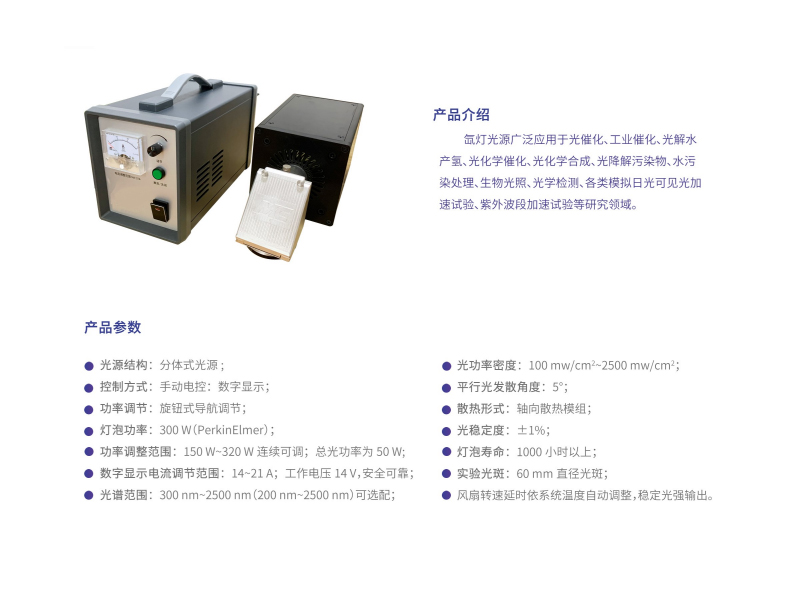 氙燈光源廣泛應用于光催化、工業(yè)催化、光解水產(chǎn)氫、光化學催化、光化學合成、光降解污染物、水污染處理、生物光照、光學檢測、各類模擬日光可見光加速試驗、紫外波段加速試購等研究領(lǐng)域。