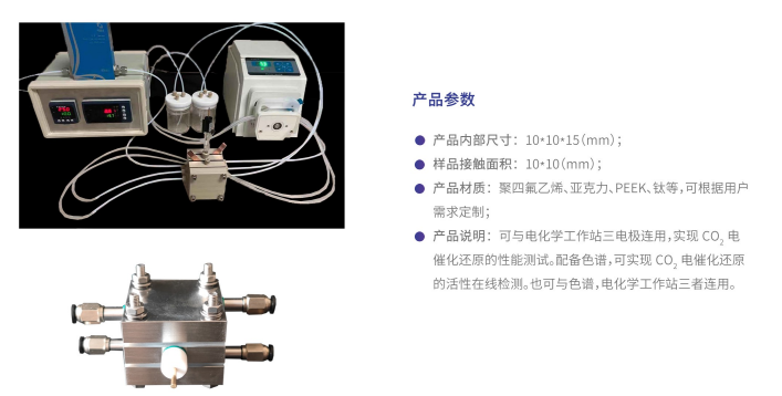 產(chǎn)品說明:可與電化學工作站三電極連用,實現(xiàn)CO?電催化還原的性能測試。配備色譜,可實現(xiàn)CO?電催化還原的活性在線檢測。也可與色譜,電化學工作站三者連用。