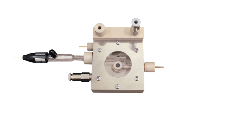 1、兩電極/三電極體系;2、PEEK/PMMA/PTFE/PI材質(zhì);3、WE:玻碳電極;4、RE:氯化銀電極/銀離子電極/硫酸亞汞電極/氧化汞電極/甘汞電極;5、CE:鉑絲環(huán)電極/石墨棒電極;6、可通氣氛,電解液靜態(tài)/動態(tài)研究;7、W.D≤6mm;8、適用于粉末催化劑/負(fù)載型催化劑研究。