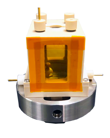 反應(yīng)池應(yīng)用于光電催化反應(yīng)的原位XRD表征,池體頂部開(kāi)有石英光窗,池體左右側(cè)開(kāi)有聚酰亞胺窗口,配有參比電極、對(duì)電極及工作電極,可以在不同波長(zhǎng)光照,不同電學(xué)條件下實(shí)現(xiàn)原位XRD測(cè)試,得到材料的結(jié)構(gòu)變化;反應(yīng)池可以實(shí)現(xiàn)反應(yīng)池內(nèi)溶液中通氣操作,產(chǎn)品可選配溫控系統(tǒng)精確控制反應(yīng)池測(cè)試溫度。