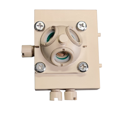 3、反應池腔帽有三個窗口,其中兩個為紅外窗口,另一個為石英窗口,用于引入外部光源(光催化激發(fā)光源)或作為觀察窗口使用;