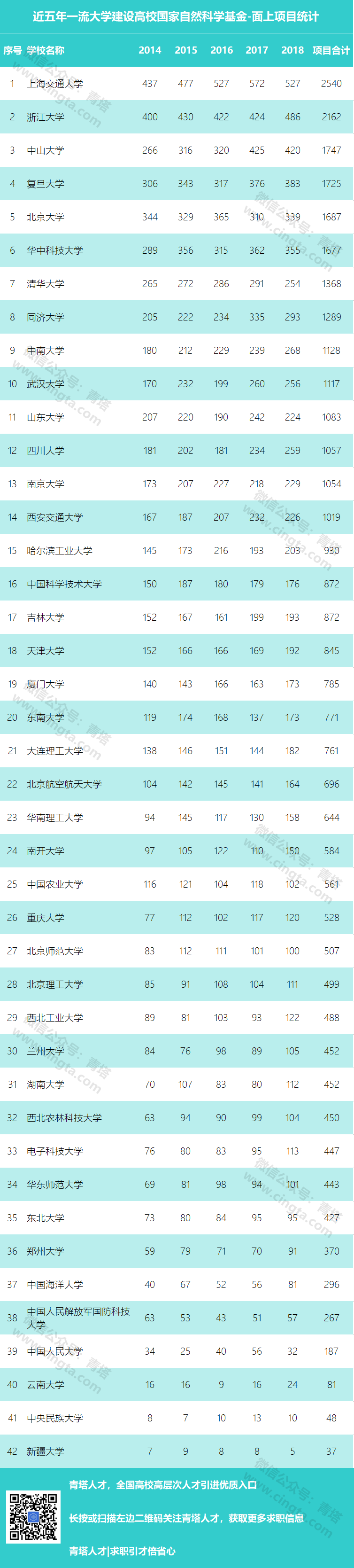 根據(jù)往年國家自然基金項目委員會公布集中受理的時間來看,2019年集中受理項目很大概率將于本周四、五公布,到時便可知道各大高校、科研單位2019年獲批項目數(shù)量和金額情況。接下來將統(tǒng)計近五年來各大高校獲批基金項目的數(shù)量,供大家參考。