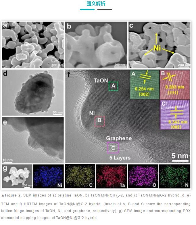 針對(duì)目前大多數(shù)可見光響應(yīng)的 (氧) 氮化物 (如 TaON、Ta3N5 等) 光催化材料電荷分離偏低、CO2 還原活性不佳以及穩(wěn)定性不足等問題,本文以 TaON 為研究對(duì)象,采用化學(xué)方法在其表面先包覆均勻致密的Ni前驅(qū)體,然后在 CVD管式爐中將 Ni 前驅(qū)體還原成單質(zhì) Ni,單質(zhì) Ni 以島狀顆粒原位分布在TaON表面,其作為模板及催化劑為CVD原位生長(zhǎng)氮摻雜石墨烯提供輔助。最后,通過鹽酸刻蝕Ni金屬,成功獲得TaON@中空島狀石墨烯分層級(jí)結(jié)構(gòu),并實(shí)現(xiàn)高效光催化CO2還原。