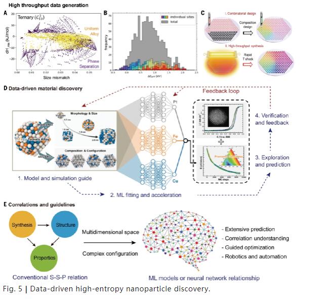 近年來,高熵納米顆粒已成為一個快速發(fā)展的研究領(lǐng)域。由于它們的多元素組成和獨特的高熵混合狀態(tài)可以帶來活性可調(diào)和穩(wěn)定性增強,這些納米顆粒在催化劑設(shè)計和探索方面受到了廣泛關(guān)注。然而,這種巨大的潛力也伴隨著很大的挑戰(zhàn),它們巨大的組成空間和復(fù)雜的原子結(jié)構(gòu)阻礙了對其全面探索和基本理解。通過合成、表征、催化應(yīng)用、高通量篩選和數(shù)據(jù)驅(qū)動材料發(fā)現(xiàn)的多學(xué)科視角,本綜述致力于討論高熵納米顆粒的重要進展,并揭示其未來在催化,能源和可持續(xù)性應(yīng)用方面發(fā)展的關(guān)鍵需求。