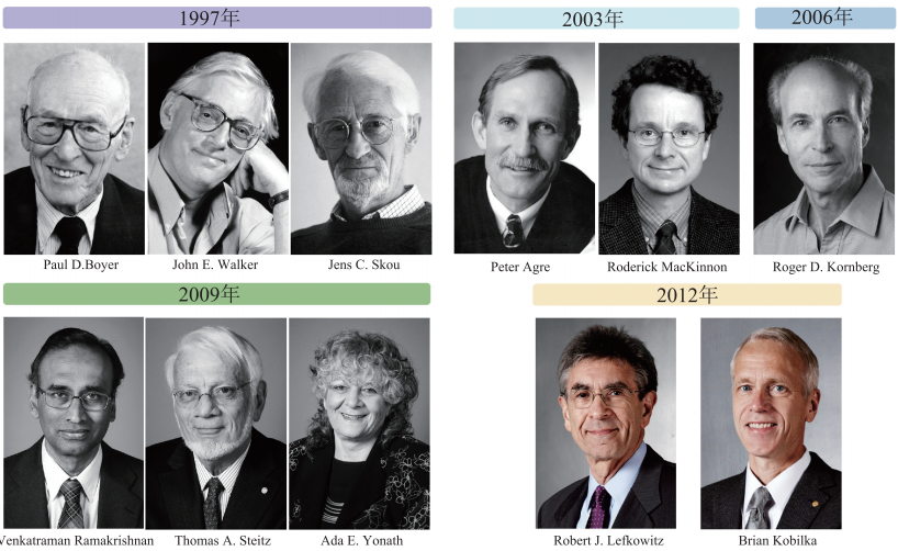 同步輻射早已走出實驗室,在實際應(yīng)用的各個領(lǐng)域大放異彩。如今,同步輻射光源已成為尖端科學(xué)研究及工業(yè)應(yīng)用不可或缺的實驗利器,可廣泛用于材料、生物、醫(yī)藥、物理、化學(xué)、地質(zhì)等領(lǐng)域。近幾十年,有五屆諾貝爾化學(xué)獎獲得者,他們的研究成果直接用到了同步輻射光源。1997年,約翰·沃克(John E.Walker)利用同步輻射光源,解析出三磷酸腺苷蛋白的結(jié)構(gòu),因而獲得諾貝爾化學(xué)獎。進入21世紀之后,對同步輻射光源的利用更加普遍,在同步輻射光源的輔助下,蛋白質(zhì)晶體學(xué)領(lǐng)域還獲得了2003年、2006年、2009年、2012年的諾貝爾化學(xué)獎(圖4)。