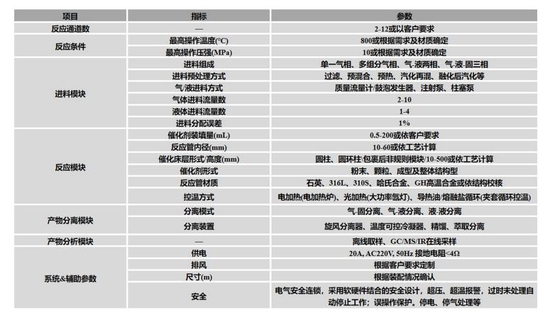 產品優(yōu)勢: 模塊化:桌面小型模塊化,根據(jù)實驗體系自由組裝、擴展及改進; 精確性:壓力±0.25%F.S,流量± 1%F.S,恒溫區(qū)溫差±1°C,各通道間溫差±1°C,控溫精度±0.1°C; 適用性:可實現(xiàn)多氣相、氣-液兩相和氣-液-固三相反應,并能與GC/MS/IR等聯(lián)用實現(xiàn)在線檢測; 便捷性:溫度采用PID控制,確保反應溫度穩(wěn)定,可恒定輸出以考察反應熱量變化。數(shù)據(jù)采集及控制集成在觸摸屏,操作界面簡潔友好,使用方便快捷??蓪崿F(xiàn)產物自動取樣分析,實現(xiàn)全天候連續(xù)運轉,無須人工干預; 安全性:電氣安全連鎖,采用軟硬件結合的安全設計,超壓、超溫 報警,過時未處理自動停止工作;誤操作保護;停電、停氣處理等。 二、加氫反應固定床評價裝置產品介紹 本裝置配置三路氣體進料和一路液體進料,包括但不限于C02加氫制備甲醇、丙酮縮合-加氫制備甲基異丁基酮等反應.可實現(xiàn)遠程控制、尾氣物流分流和全組分進樣分析.