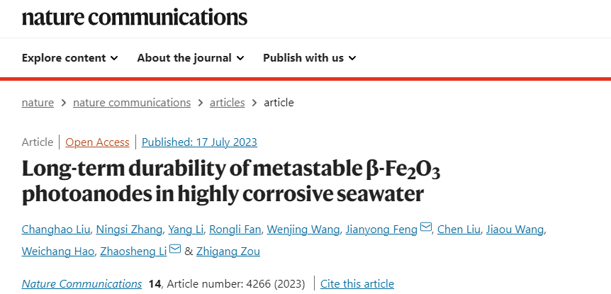 近日,南京大學(xué)現(xiàn)代工學(xué)院李朝升、鄒志剛團(tuán)隊(duì)探索了光電化學(xué)分解海水過程中OH?和Cl?等離子參與β-Fe2O3表面重構(gòu)的過程,并且利用晶格中的Sn增強(qiáng)金屬-氧相互作用的原理,抑制了過度的表面重構(gòu),在模擬海水電解液中穩(wěn)定工作3000小時(shí),獲得了目前報(bào)道的穩(wěn)定性最好的海水分解光陽極材料。相關(guān)的工作以“Long-term durability of metastable β-Fe2O3 photoanodes in highly corrosive seawater”為題發(fā)表在Nature Communications上。